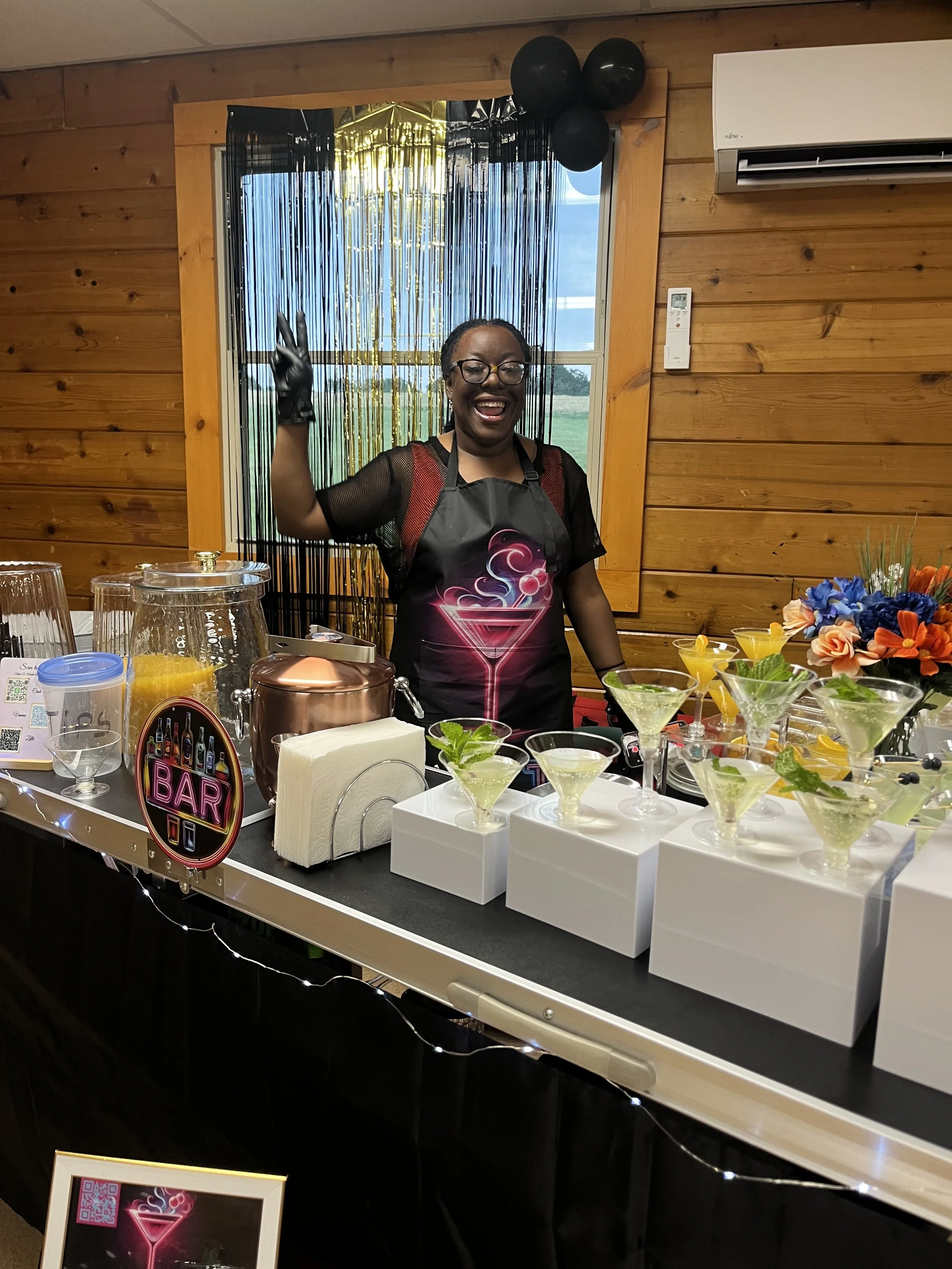 Pricing packages for our services depends on several factors, including your location, the type of event, the duration of service, the number of guests. Please note, we do not provide or sell alcohol. The Client is responsible for supplying all alcoholic beverages.